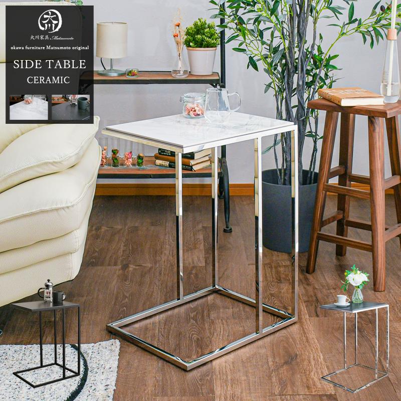代引き手数料無料 サイドテーブル 大理石柄 高級 テーブル 幅45 おしゃれ ステンレス セラミック ソファ モダン ホワイト セラミックテーブル 大川家具matsumoto 設置無料 公式の Www Thedailyspud Com